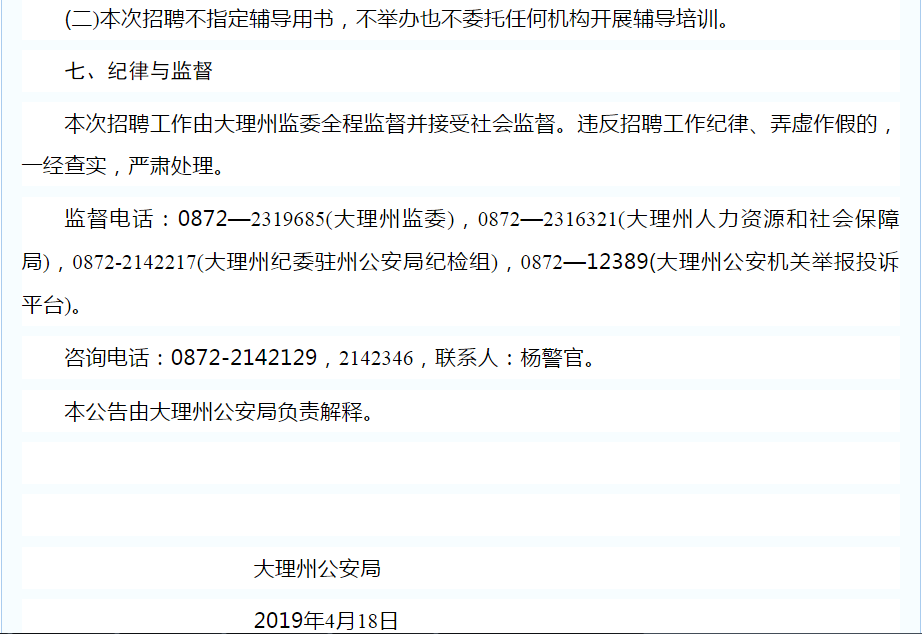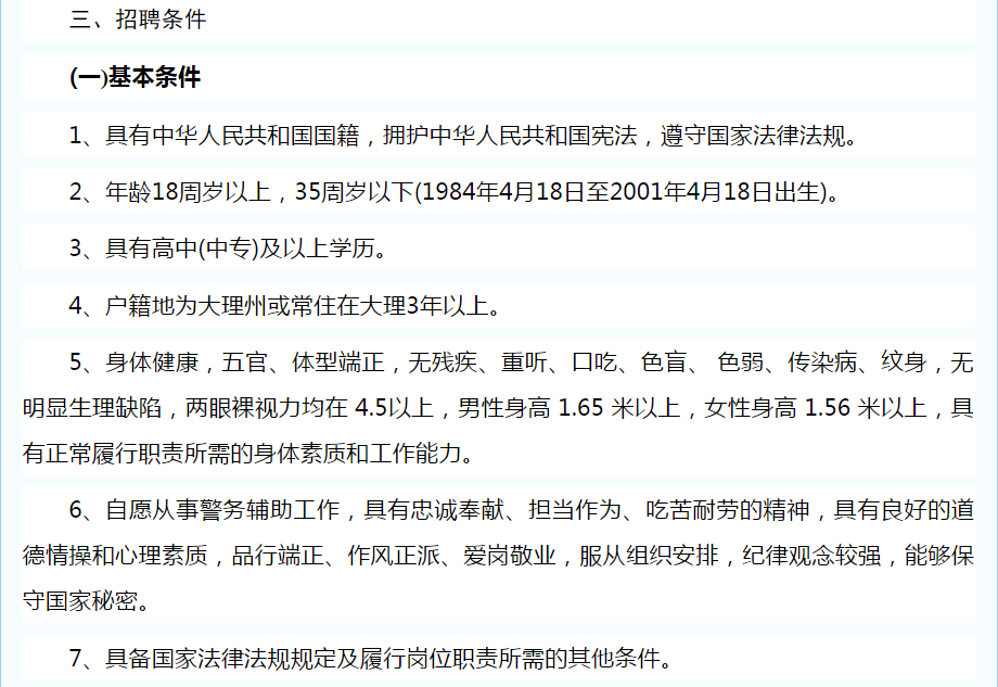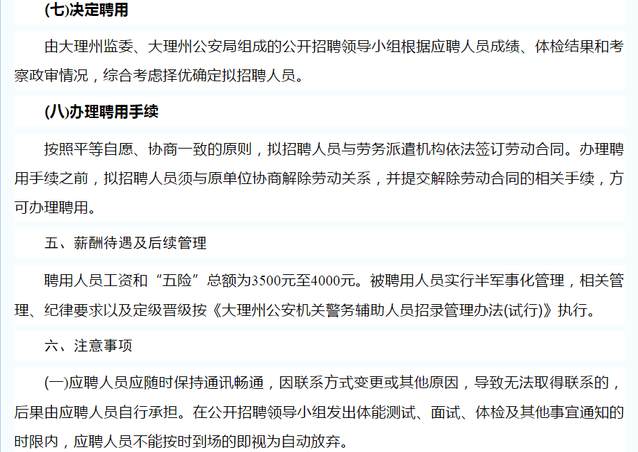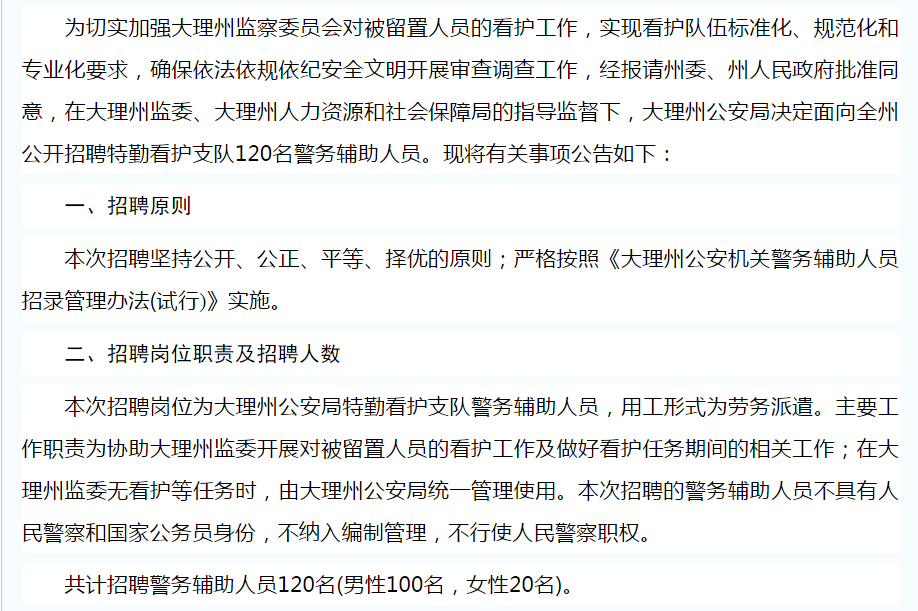 大理州公安局關(guān)于公開招聘特勤看護支隊警務(wù)輔助人員的公告