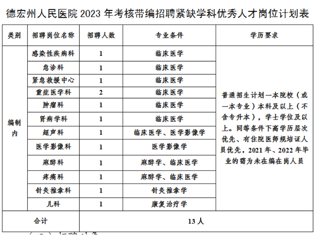 德宏州人民醫(yī)院2023年考核招聘緊缺專業(yè)學科優(yōu)秀人才公告