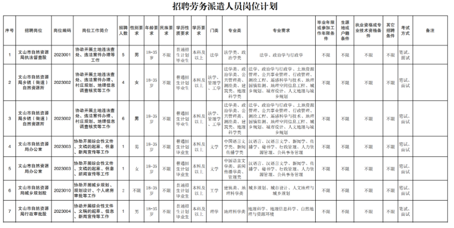 根據(jù)工作需要,文山市自然資源局委托文山州財信人力資源有限公司面向社會公開招聘勞務派遣工作人員20名,F(xiàn)將有關(guān)事項公告如下: