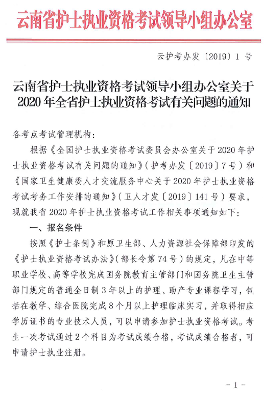 云南省關(guān)于2020年全省護(hù)士執(zhí)業(yè)資格考試有關(guān)問題的通知