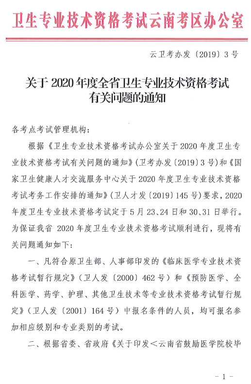 關于2020年度我省衛(wèi)生專業(yè)技術資格考試有關問題的通知